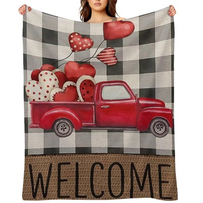 Valentine's Day Fleece Blanket Ultra Soft Anti-Pilling Rose Eucalyptus Heart Welcome Print for Couch Bed 60x80 inches