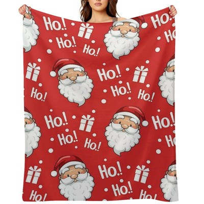 FIONECA Red Santa Claus HO HO Gift Pattern Cheerful Christmas Throw Blanket Holiday Festive Decor 50x60 inches