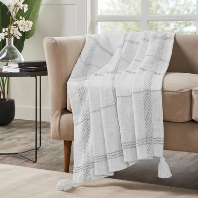 Kate Aurora Berkshire Cotton Plaid Fringed Accent Throw Blanket - 50 in. W x 60 in. L