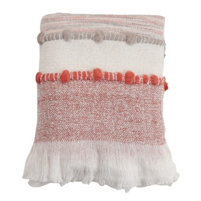 HomeRoots 50" X 67" Cream Cotton Blend Woven Throw Blanket with Fringe