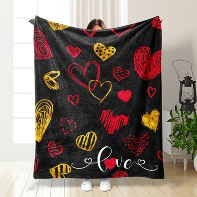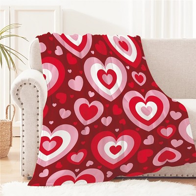Valentine's Day Fleece Blanket Ultra Soft Anti-Pilling Red Assorted Heart Welcome Print for Couch Bed Camping 30x40 inches