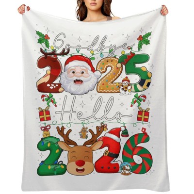Lomsoe Cute Santa Claus and Reindeer Print Flannel Blanket - All Seasons Soft Cozy Warm Throw Blanket for Bed, Napping, Camping, Travel, Office