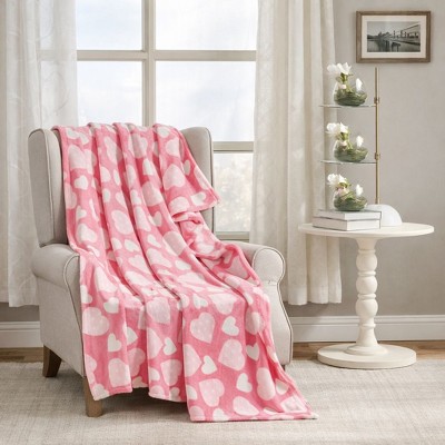 Kate Aurora Valentine's Day Pink Polka Dot Hearts Ultra Soft & Plush Accent Throw Blanket - 50 In W X 60 In. L