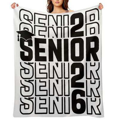 Soscooter 2026 Senior Flannel Blanket Repeated Letter Grad Cap Design Soft Cozy Throw Blanket Home Decor Gift 50x60 inches