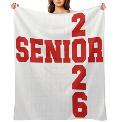 Soscooter 2026 Senior New Year Flannel Blanket Bold Red Letter Design Soft Cozy Throw Blanket Home Decor Gift 50x60 inches