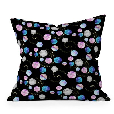 16"x16" Deny Designs Retrografika Planets Outdoor Throw Pillow Black: Abstract Design, Polyester, Square Shape