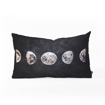 14"x23" Emanuela Carratoni Mystery Moon Lumbar Throw Pillow Black - Deny Designs: Modern Indoor Rectangle Cushion