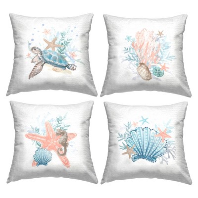 Stupell Industries Pastel Sea Life Coral Reef 4pc Outdoor Decorative Throw Pillow Set, 18 x 18 Each