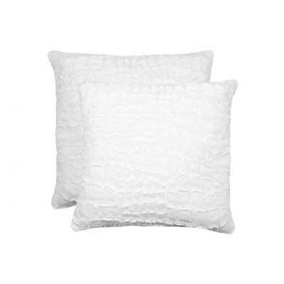 HomeRoots Set of Two 18" Black and White Rabbit Natural Fur Throw Pillow