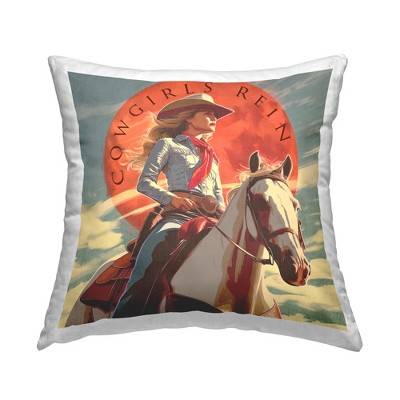 Stupell Industries Cowgirls Rein Portrait Indoor Decorative Throw Pillow, 18 x 18