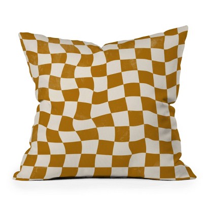 16"x16" Avenie Warped Checkerboard Square Throw Pillow Gold - Deny Designs: Machine Washable, Indoor Use, Zipper Closure