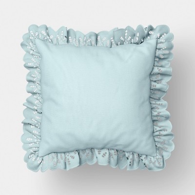 18"x18" Luxe Square Velvet Pleated Decorative Pillow Light Teal - Threshold™: Indoor Geometric Design, Polyester Velour