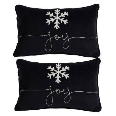 Whisen Velvet Pillow with Embroidered Joy and Frosty Snowflake, Christmas Halloween Holiday Decor, Set of 2 - Black & White