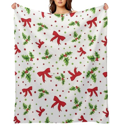 Soscooter Holiday Flannel Throw Blanket Holly Leaf Red Berry Minimalist Christmas Festive Cozy Throw Blanket 60x80 inches