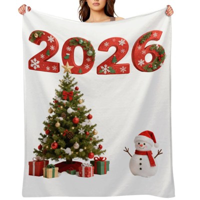 Soscooter 2026 New Year Flannel Blanket Christmas Tree Snowman Gift Pattern Soft Cozy Throw Blanket for Holiday Decor