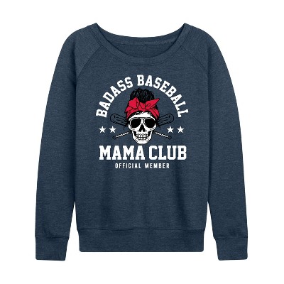 Women's - Instant Message - Badass Baseball Mama Lightweight French Terry Wide Neck Long Sleeve Graphic Shirt