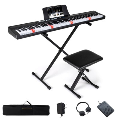Costway 88-Key Electric Piano Keyboard with Adjustable Stand Stool, Light-up Keys & Buttons White/Black