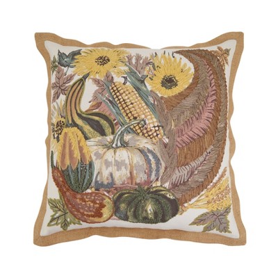 Saro Lifestyle Embroidered Cornucopia Poly Filled Throw Pillow, 20", Multi