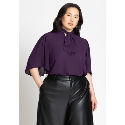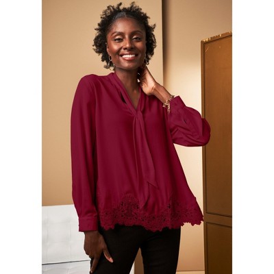 Agnes Orinda Women's Plus Size Office Fashion Long Sleeves Ribbon Front Chiffon Blouses