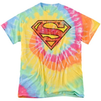Men's Superman Tattered Shield Tie Dye T-Shirt