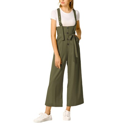 Allegra K Women's High Waist Wide Leg Belted Button Long Jumpsuit
