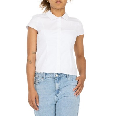 Forever 21 Women's Poplin Button-Down Short Sleeve T-Shirt – Short Sleeve Collared Top with Self-Tie Back, 100% Cotton