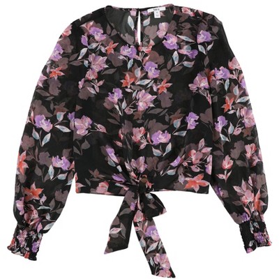 I.N.C International Concepts Womens Tie-Front Floral Pullover Blouse