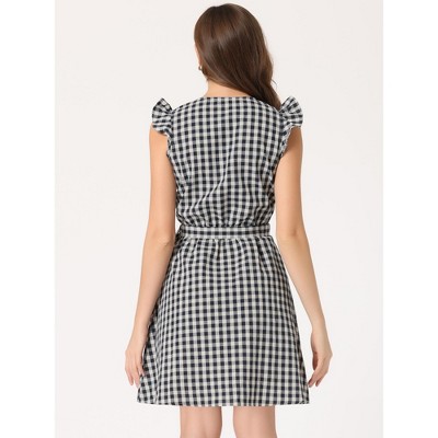 Allegra K Women's Summer Ruffled Sleeve A-Line Vintage Gingham Check Sundress