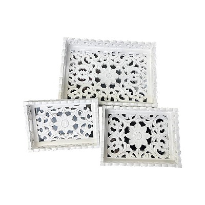 happimess Parker Southwestern Cottage Resin Scalloped Rectangular Decorative Serving Trays (Set of 3)