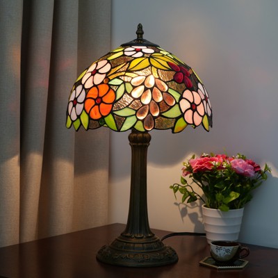 8" W x 14" H Multi-Colored Tiffany Style Bronze Finish Table Lamp with Rose Stained Glass Lamp Shade
