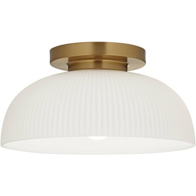 Possini Euro Design Brianna 16" Modern Semi Flush-Mount Ceiling Light Fixture Kitchen Foyer Hallway Round Warm Brass Finish Ribbed Glass Bedroom