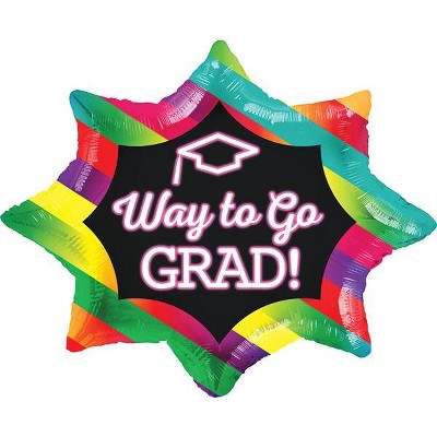 LoonBalloon 28 Inch Way to Go Grad! Neon & Stripes Medium Size Graduation Theme Balloon Set with 4 pcs Latex