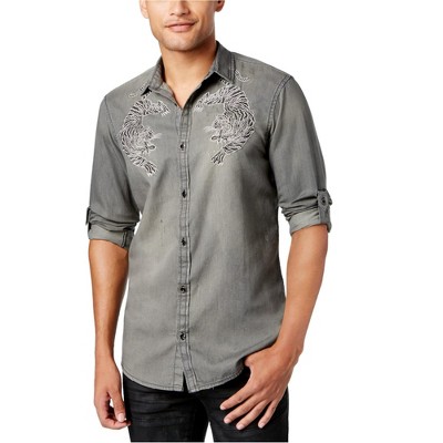 I.N.C International Concepts Mens Embroidered Bengal Tiger Button Up Shirt