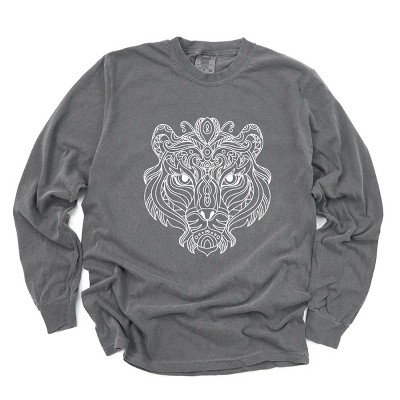 Tiger Face Mandala - Women's Garment Dyed Long Sleeve Graphic T-Shirt