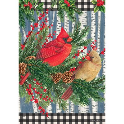 Checkered Snowman Winter House Flag Cardinal Pair Berries 28" x 40" Briarwood Lane