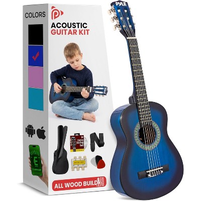 Pyle Beginners 6-String Acoustic Guitar Kit - Includes Complete Accessory Kit with Picks, Strap, Tuner, and Gig Bag for Easy Learning (Blue)