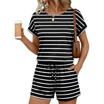Ekouaer Womens Rompers for Summer Casual One Piece Short Jumpsuit Striped Cap Sleeve Beach Clothes Travel Outfits