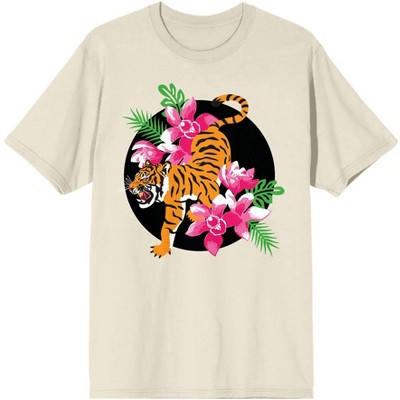 Natural World Tiger And Tropical Flowers Men's Natural T-Shirt