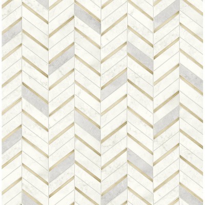 NextWall Faux Chevron Marble Tile Peel and Stick Wallpaper: Self-Adhesive, Repositionable, Washable, Gold, 30.75 Sq Ft Coverage