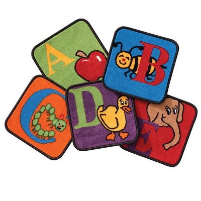 Carpets for Kids Alphabet Blocks Seating Rug 14" Squares Kit, Nature Colors, Set of 26