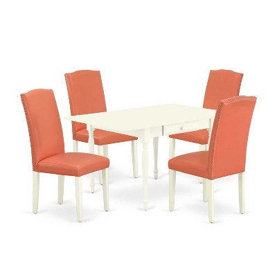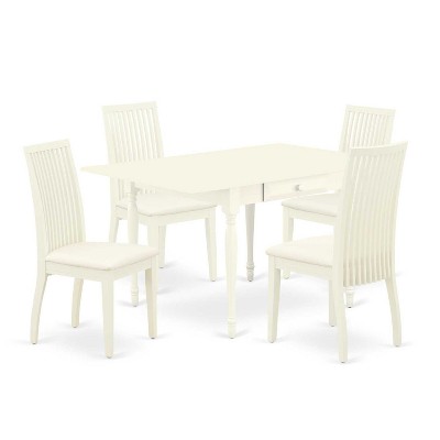 HomeStock 5-Pc Linen White Finish Solid Wood Top - Dining Room Set with Dropleaf - Seats 4