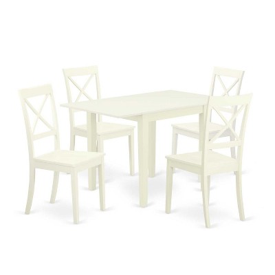 HomeStock 5-Pc Linen White Finish Solid Wood Top - Dining Room Set - Seats-4