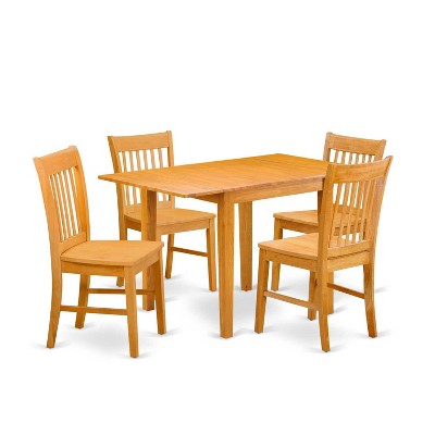5-Piece Natural Oak Finish Solid Wood Top - Dining Room Set - Seats 4