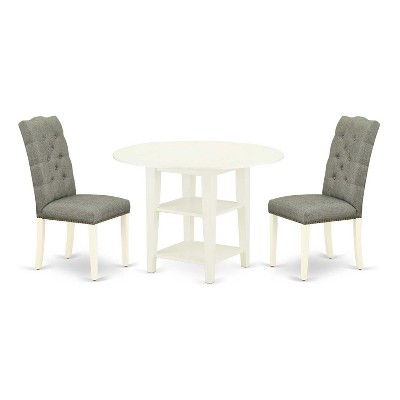 3-Piece Linen White Finish Solid Wood Top Dining Room Set (Seats-4)