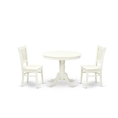 3-Piece Linen White Finish Solid Wood Top - Dining Room Set - Seats 4