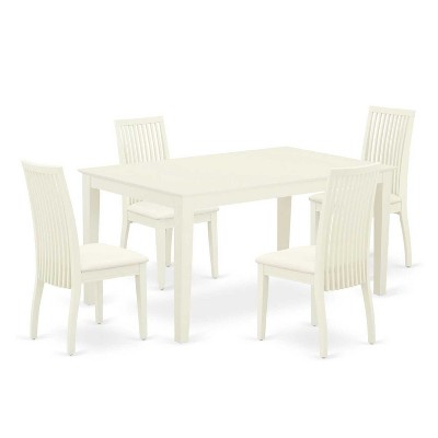 5-Piece Linen White Finish Solid Wood Top - Dining Room Set - Seats 4
