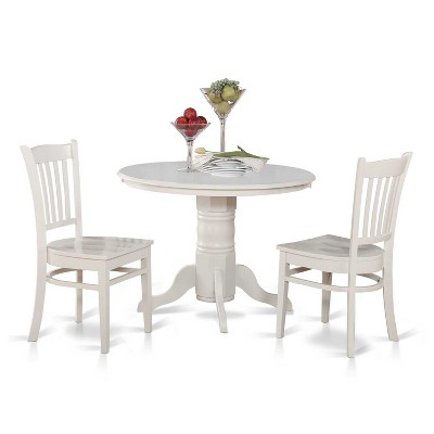 3-Piece Linen White Finish Solid Wood Top - Dining Room Set - Seats 4