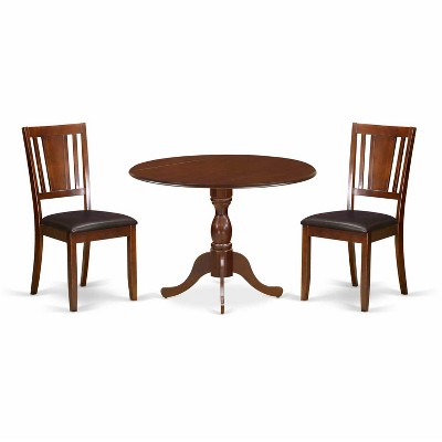 3-Piece Mahogany Finish Solid Wood Top - Dining Room Set - Seats 4