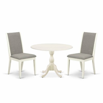 3-Piece Linen White Finish Solid Wood Top - Upholstered Dining Room Set - Seats 4