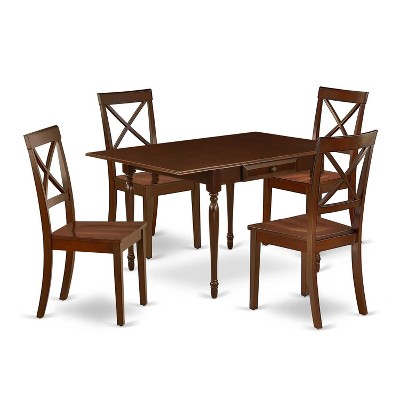 HomeStock 5-Pc Mahogany Finish Solid Wood Top - Rectangular Dining Room Set with Dropleaf - Seats 4